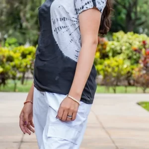Top playero en tela plana en 100% algodon teñido reactivo en prenda