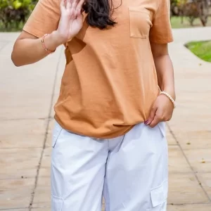 T-shirt manga corta con bolsillo en jersey 40/1 100% algodon pima pigmentado en prenda