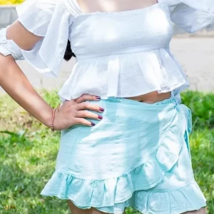 Top playero con maga recogidas en tela plana 100% aldofon teñido en prenda